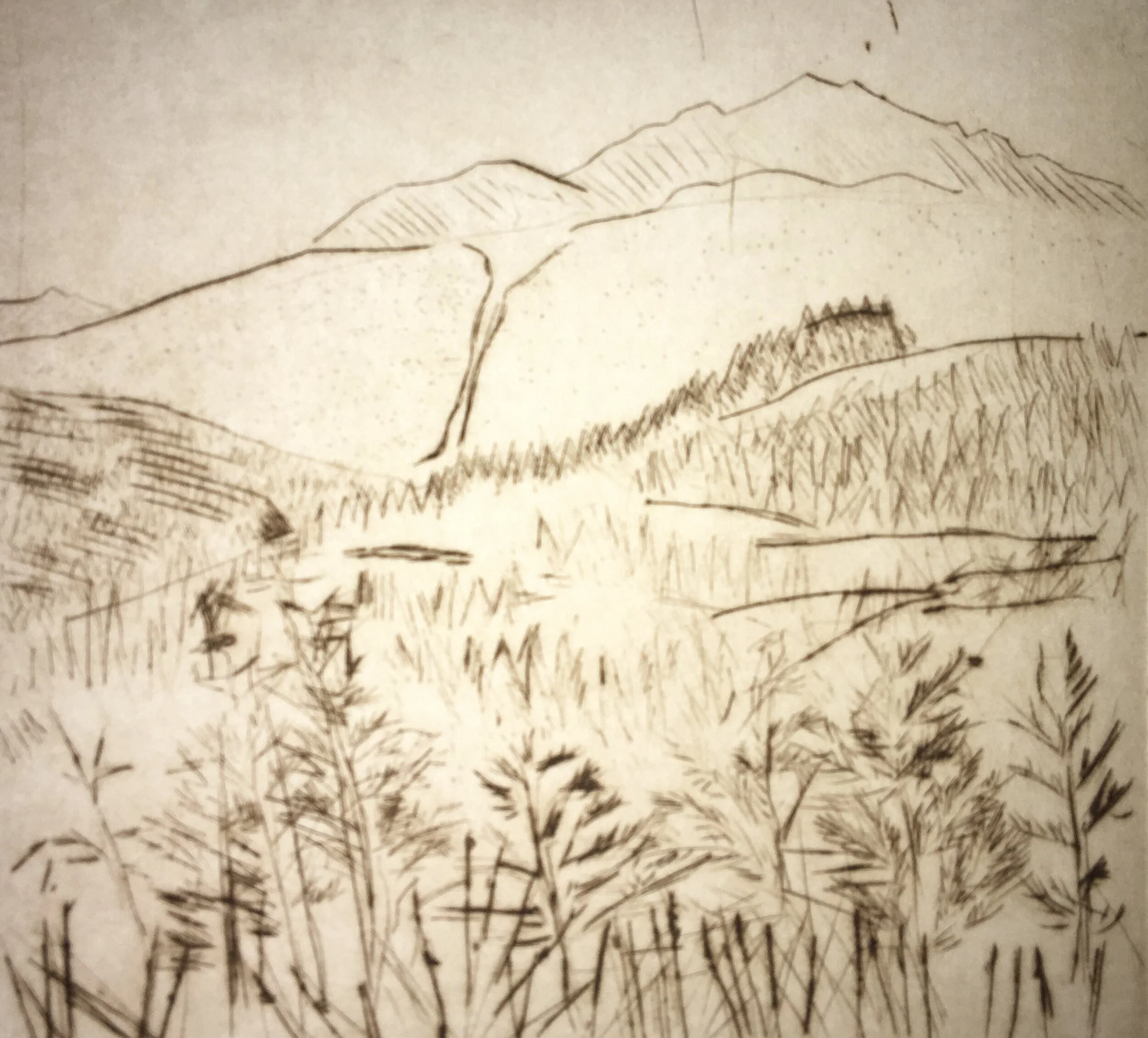 These were shown as part of an installation including sound and drawing in Asna Gallery in Clonakilty in 2022. The exhibition incorporated etchings, drawings and a soundscape featuring the cawing of crows to create an immersive experience for the audience. In this work the artist is looking at powerful associations, and embodied memories, in the places we know and move through. Her work is about Place and is a response to both what is there and the shared hidden history within places and landscapes’